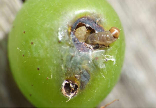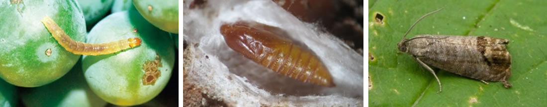Larvas: Se encuentran en los racimos y pueden medir entre 1 y 15 mm. Son de coloración verdosa
